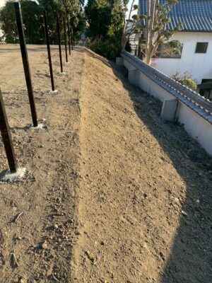 隣地境界に向け法面になってます。