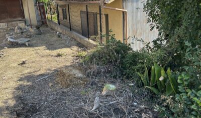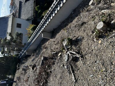 撤去後は、木の根や雑草が目立ちます