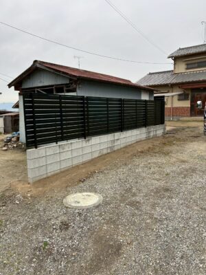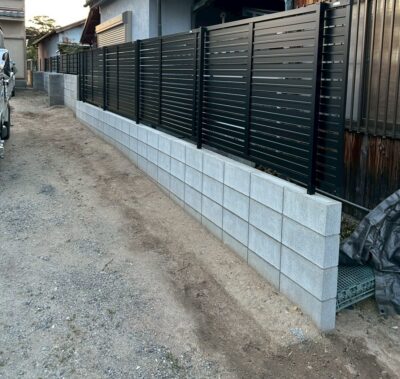 このように、隣地境界を新たなブロックで積みなおし、フェンスを設置
