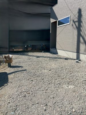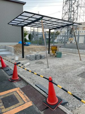 カーポートも設置されて、ここからアプローチ平板敷き・土間工事が始まります。