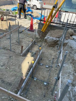 伸縮目地を入れたり、スリットを入れるために型枠を組んだり・・