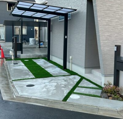 車の出し入れ時に砂利が飛び出す心配もなしです。